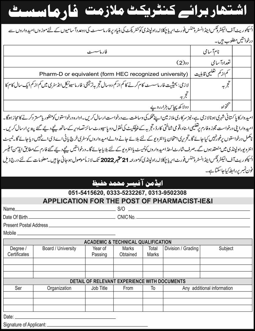 Latest Inspectorate of Electronics and Instrumentation Fort Area Army jobs Posts Rawalpindi 2025