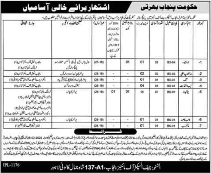 Inspectorate of Mines is looking for candidates for following posts as per job advertisement published in daily Dunya Newspaper of February 2, 2022 for location Mianwali, Khushab, Jhelum and Lahore Punjab Pakistan: