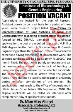Vacancies in The University Of Agriculture Advertisement August 2020