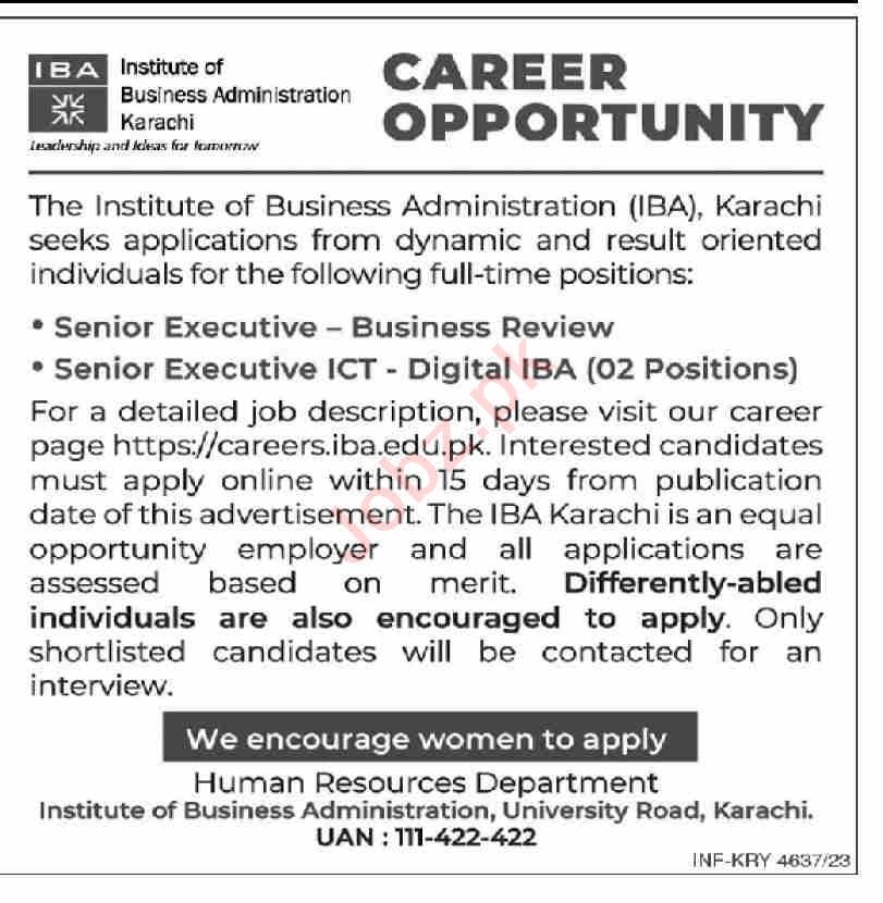 Institute of Business Administration IBA is looking for candidates for following posts as per job advertisement published in daily Dawn Newspaper of December 10, 2023 for location Karachi, karachi Sindh Pakistan: