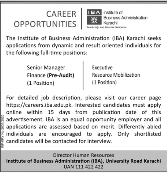 Latest Institute of Business Administration IBA Management Posts Karachi 2025