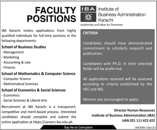 Vacancies in Institute of Business Administration IBA Advertisement April 2021