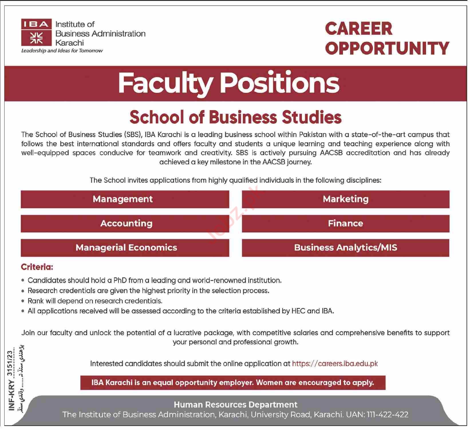Latest Institute of Business Administration IBA Education Posts Karachi 2025