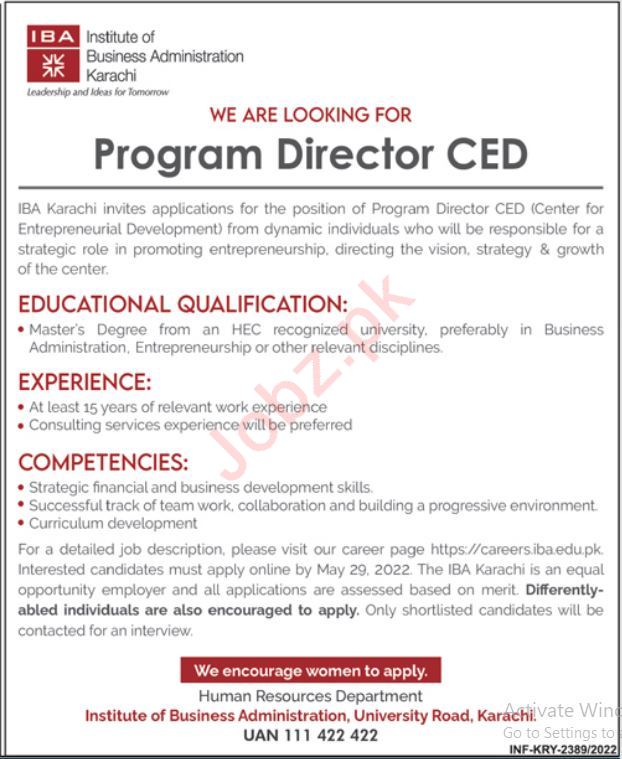 Vacant posts including program director ced and project director are announced in Institute of Business Administration IBA Karachi, karachi Sindh Pakistan as per 15 May 2022 advertisement in daily Jang Newspaper. Master etc. educational qualification will be preferred.