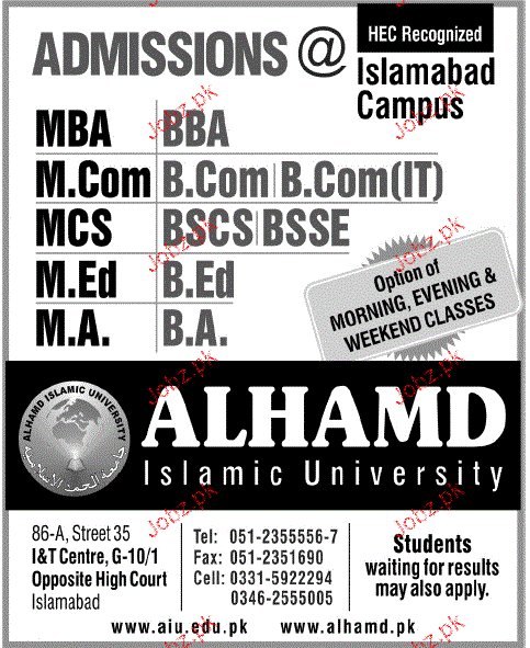 Institute of Cost and Management Accounts of Pakistan Admission in MBA, BBA, MCs, M.com, BSCS, B.COm, MA and BA in Islamabad. Read newspaper ad for exact details.