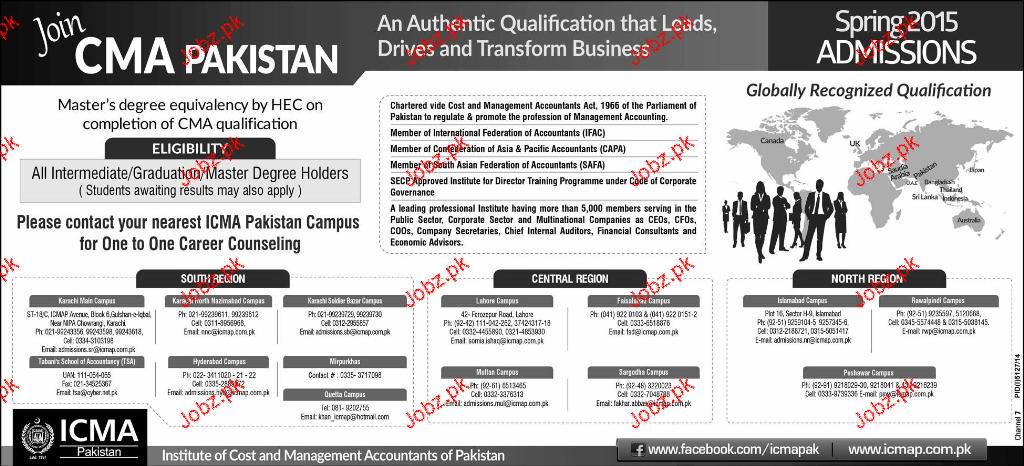 Institute of Cost and Management Accounts of Pakistan Admission in CA in Gujranwala. Read newspaper ad for exact details.