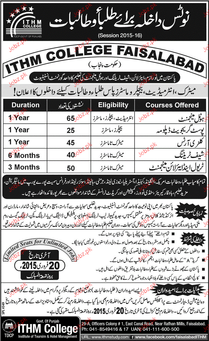 Institute of Hotel Management Admission in Courses in Faisalabad. Read newspaper ad for exact details.