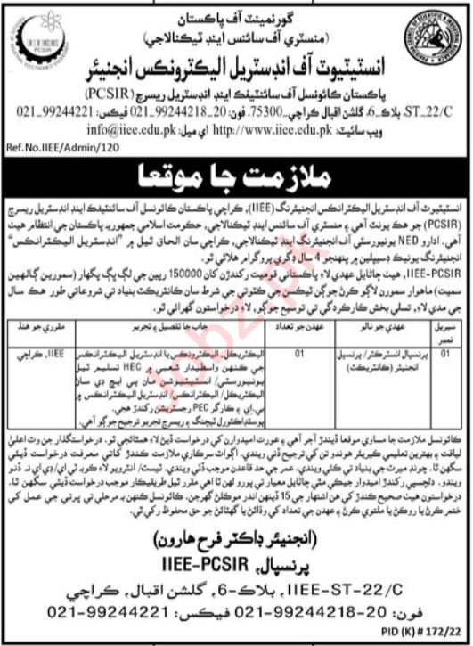 Institute of Industrial Electronics Engineering IIEE Karachi, karachi Sindh Pakistan invites applications from eligible candidates for the post of principal administrator as per advertisement of July 25, 2022 published in daily Kawish Newspaper. Bachelor and Master etc. educational qualification will be preferred.