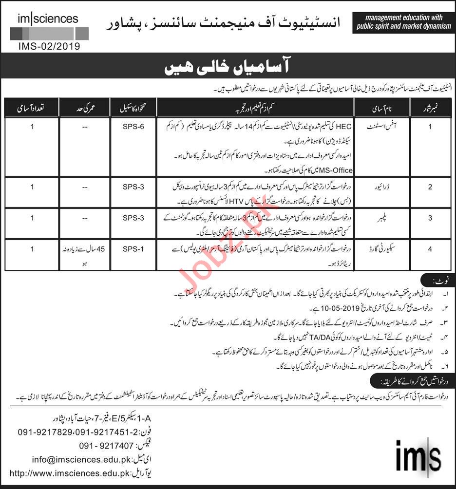 Vacancies in Institute of Management Sciences Advertisement April 2019