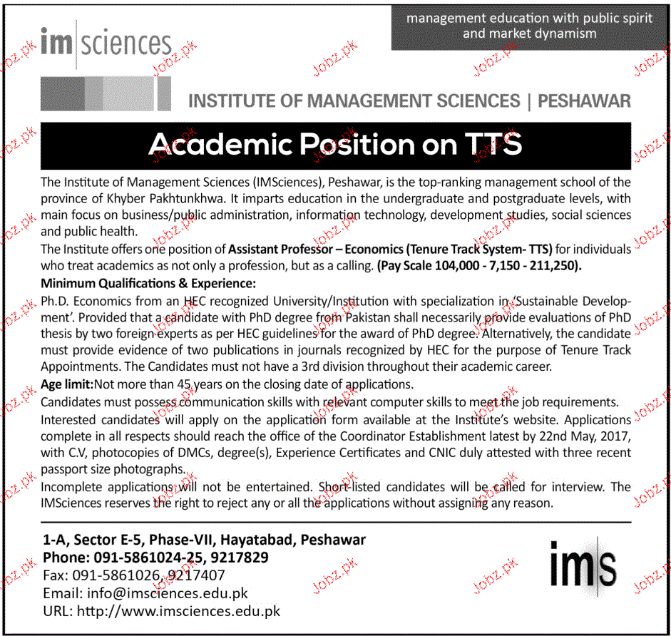 Institute Of Management Sciences Peshawar IMS Faculty Jobs