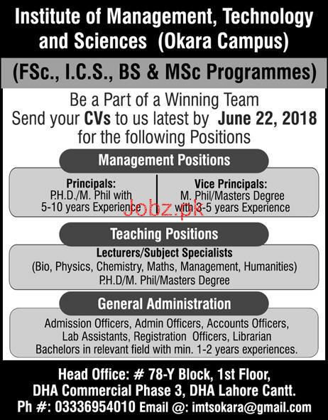 Latest Institute of Management Technology and Sciences Management Posts Okara 2025