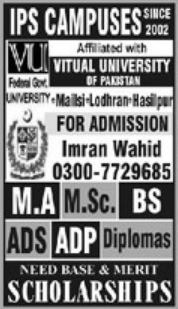 Institute of Professional Studies IPS Multan Admissions 2022 for Masters