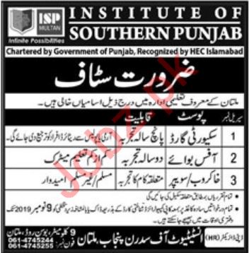Vacancies in Institute of Southern Punjab ISP Advertisement November 2019