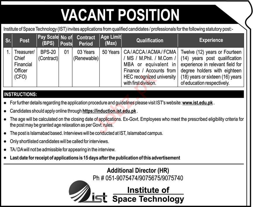 Institute of Space Technology IST invites applications for job positions advertised in daily Express dated 13 August 2023 for following vacancies in Islamabad, islamabad Islamabad Pakistan.
