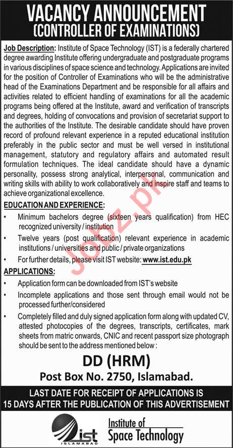 Latest Institute of Space Technology IST Education Posts Islamabad 2025