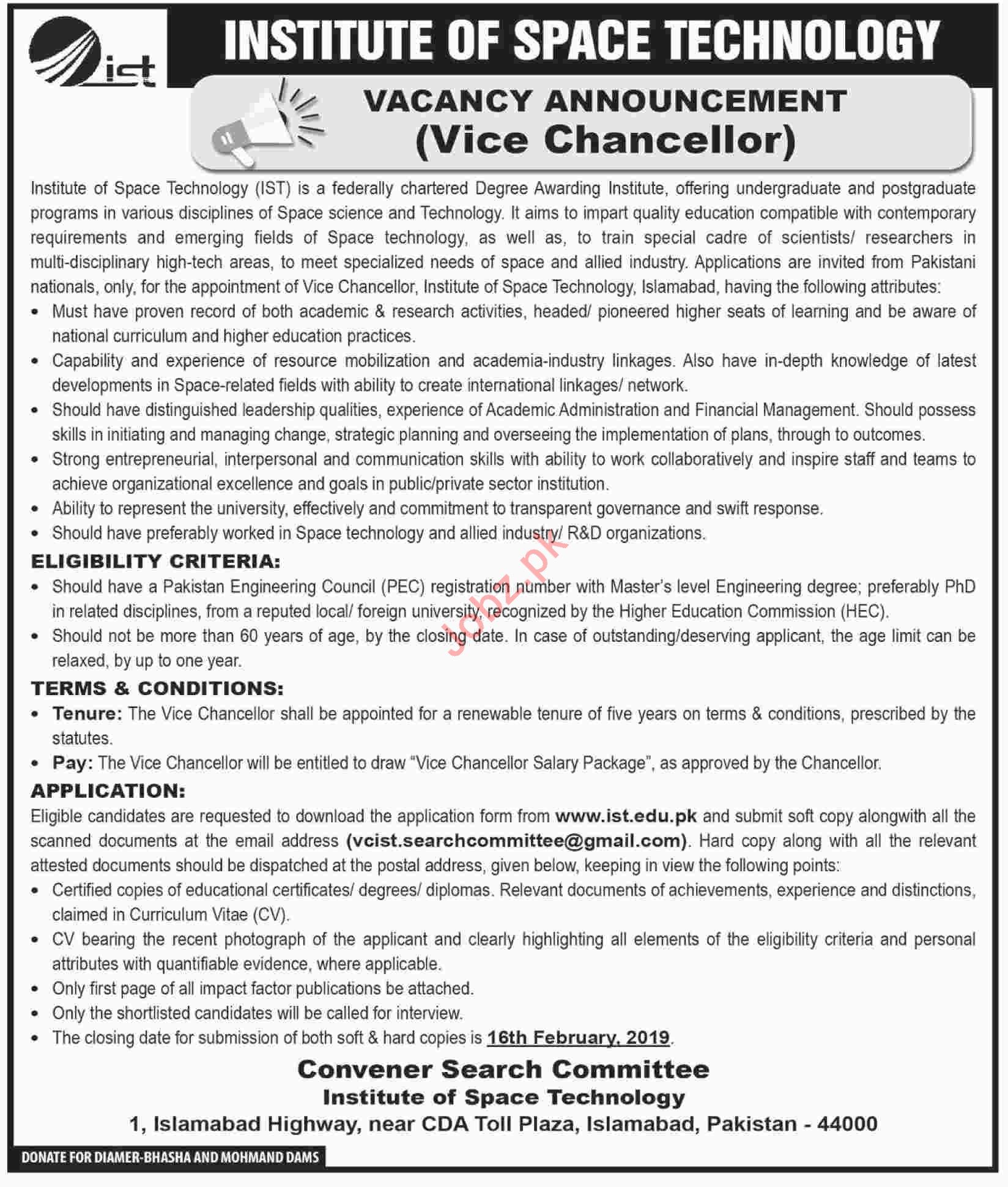 Institute Of Space Technology IST Vice Chancellor Jobs