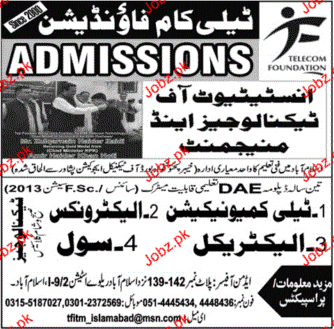 Institute of Technology and Management Admission in DAE in Civil, Mechanical, Electrical, Telecome & Electronics in Islamabad Read newspaper ad for exact details.