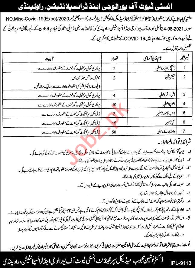 Institute Of Urology & Transplantation Rawalpindi Jobs 2021