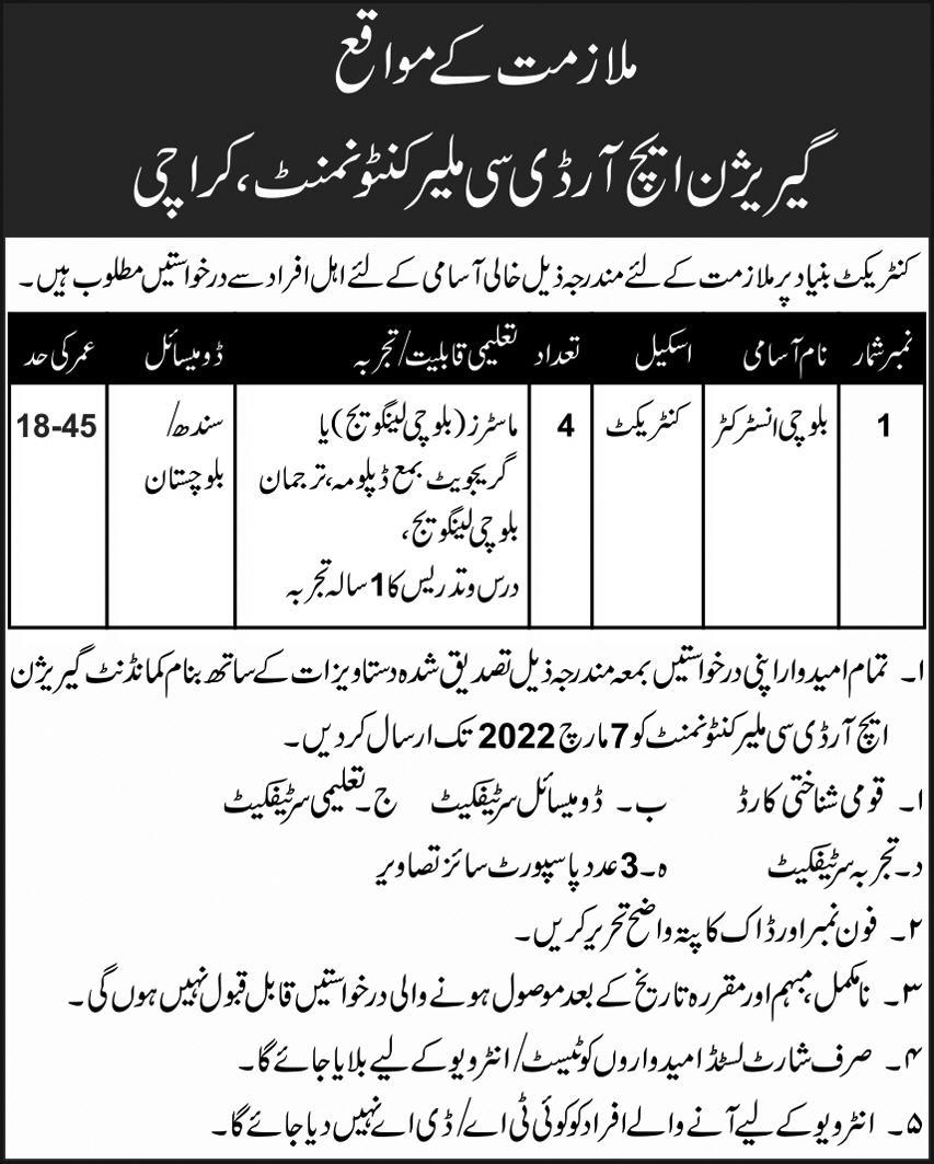 Latest Government jobs in Garrison Human Resource Development Center in Education and others can be applied till 7 March 2022 or as per closing date in newspaper ad. Read complete ad online to know how to apply on latest Garrison Human Resource Development Center job opportunities.