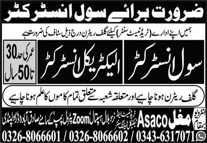 Vacant posts including civil instructor and electrical instructor are announced in Mughal Asaco Trade Test & Technical Training Center Rawalpindi, rawalpindi Punjab Pakistan as per 25 September 2024 advertisement in daily Express Newspaper. Educational qualifications required Intermediate, Others and DAE etc.