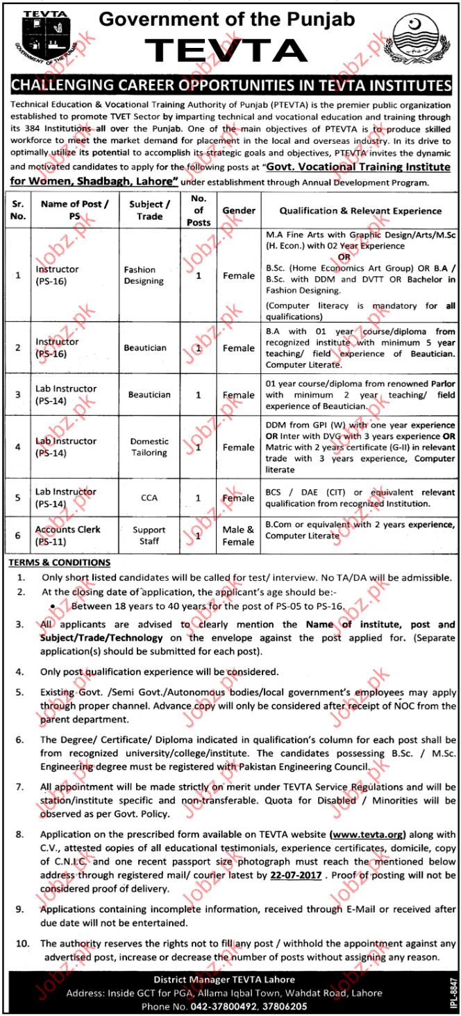 Instructor Jobs In TEVTA Government Of The Punjab