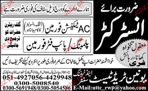 Instructors, AC Technicians Foreman Job Opportunity