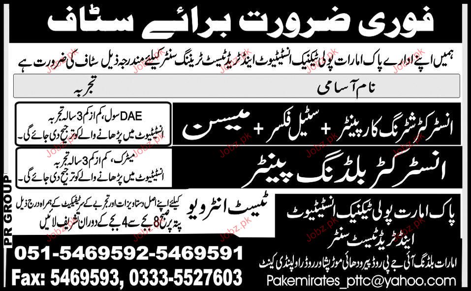 Apply as per details in job advertisement. Login to view further details of how to apply via https://www.jobz.pk online.