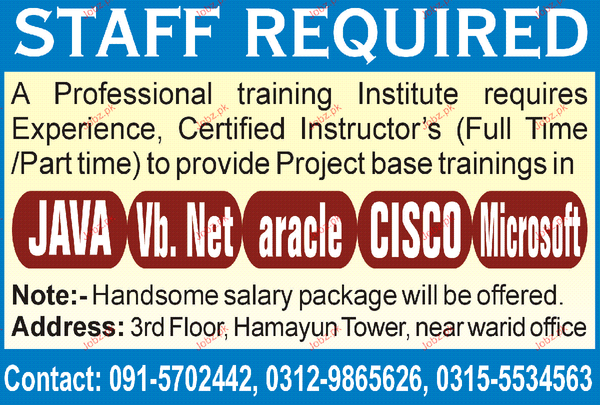 Instructors Java, VB.Net, Oracle, CIsco, Microsoft Wanted