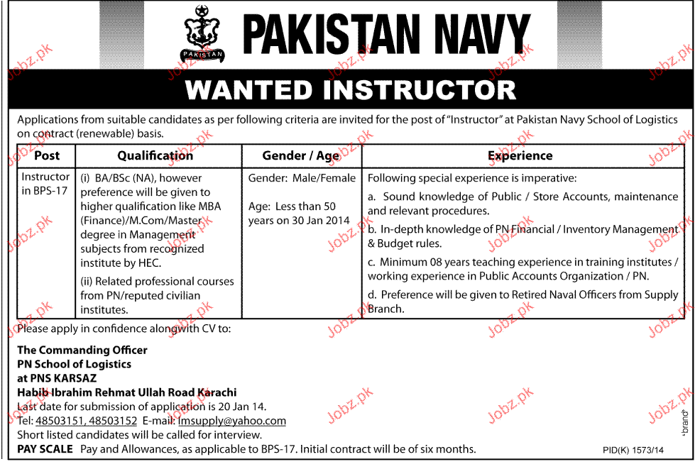 Instructors Job in Pakistan Navy