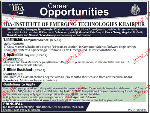 Apply as per details in job advertisement. Login to view further details of how to apply via https://www.jobz.pk online.