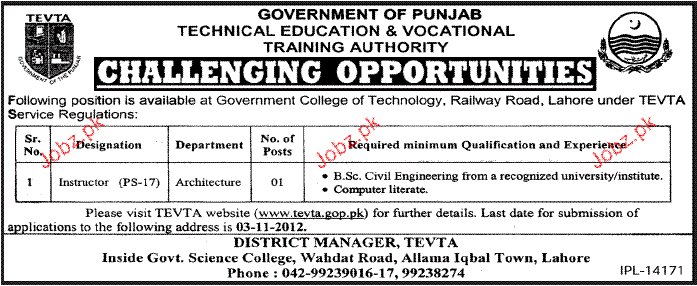 Latest Technical Education and Vocational Training Authority TEVTA Teaching Posts Lahore 2025