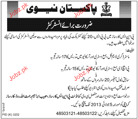 Latest Pakistan Navy Teaching Posts Karachi 2025