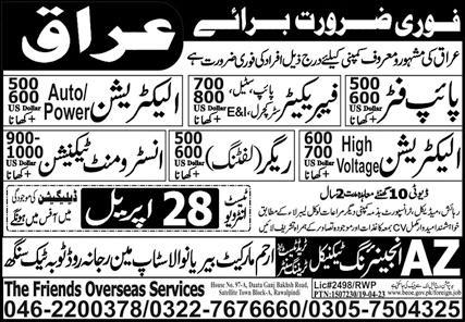 The Friends Overseas Service invites applications for job positions advertised in daily Express dated 25 April 2023 for following vacancies in Basra, baghdad Iraq.