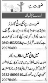Insurance Agent & Security Guard Jobs 2025 in Islamabad