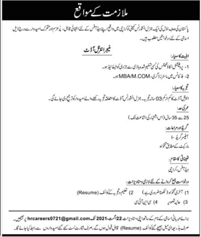 Apply as per details in job advertisement. Login to view further details of how to apply via https://www.jobz.pk online.