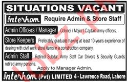 Interham Pvt Limited Jobs For Admin & Store Staff In Lahore
