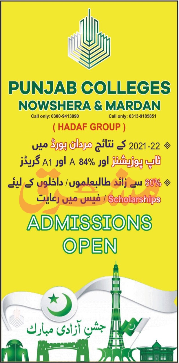 Admissions in Punjab College 2023 for Intermediate Classes has been announced. Punjab College Nowshera Mardan Khyber Pakhtunkhwa KPK Pakistan welcomes students to apply for admissions in academic year 2023 in Science College. Students for admissions in Intermediate & criteria can apply as per Private institute admission policy 2023 before closing date September 13, 2023 as per advertisement. Read newspaper ad for exact details.