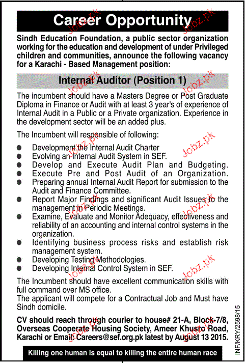 Apply as per details in job advertisement. Login to view further details of how to apply via https://www.jobz.pk online.