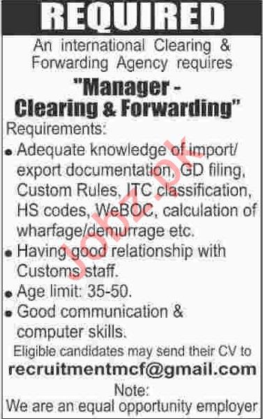 Latest Clearing & Forwarding Company Management Posts Karachi 2025