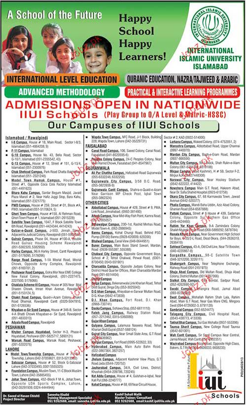 International Islamic University Admission in Play Group to Matric in Lahore Read newspaper ad for exact details.