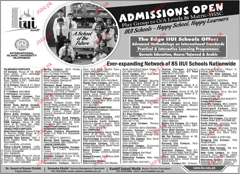 International Islamic University Admission in Schools in Jhelum Read newspaper ad for exact details.