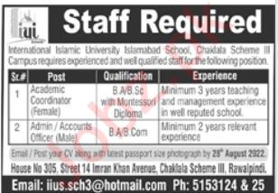 International Islamic University Islamabad IIUI is looking for candidates for following posts as per job advertisement published in daily Jang Newspaper of August 21, 2022 for location Islamabad, islamabad Islamabad Pakistan: