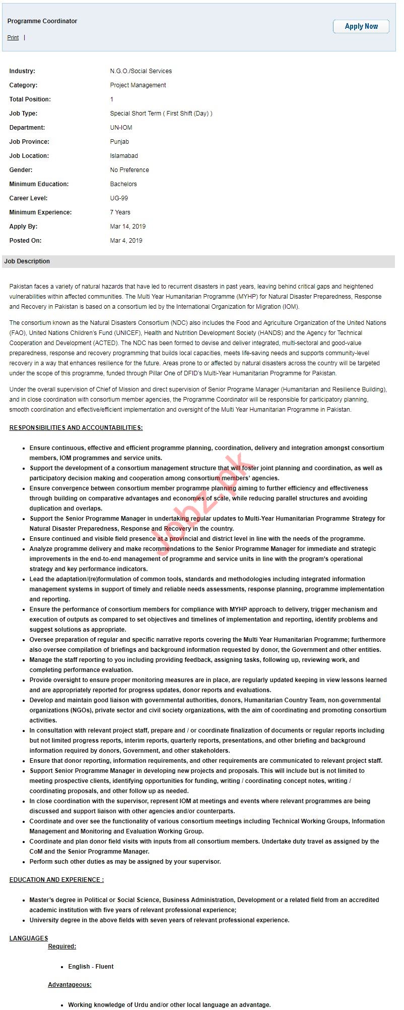 Vacancies in International Organization for Migration IOM Advertisement March 2019