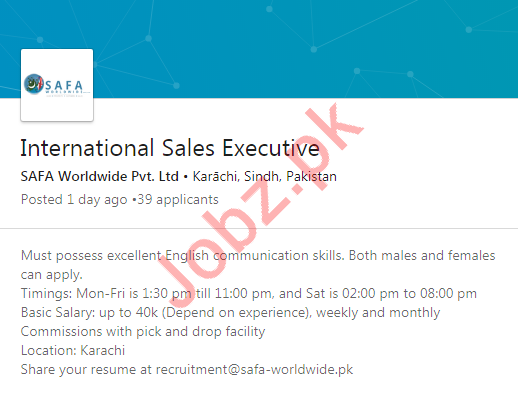 Latest SAFA Worldwide Private Limited Sales Posts Karachi 2025