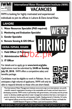 Latest International Water Management Institute IWMI Management Posts Dera Ismail Khan 2025