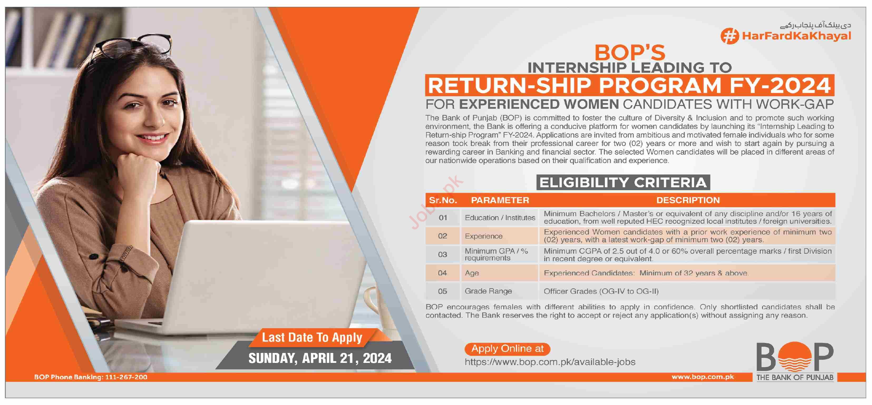 The Bank of Punjab BOP latest Private Management jobs and others can be applied till April 21, 2024 or as per closing date in newspaper ad. Read complete ad online to know how to apply on latest The Bank of Punjab BOP job opportunities.