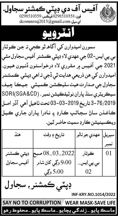 Interview Date For Job At Deputy Commissioner Office Sujawal
