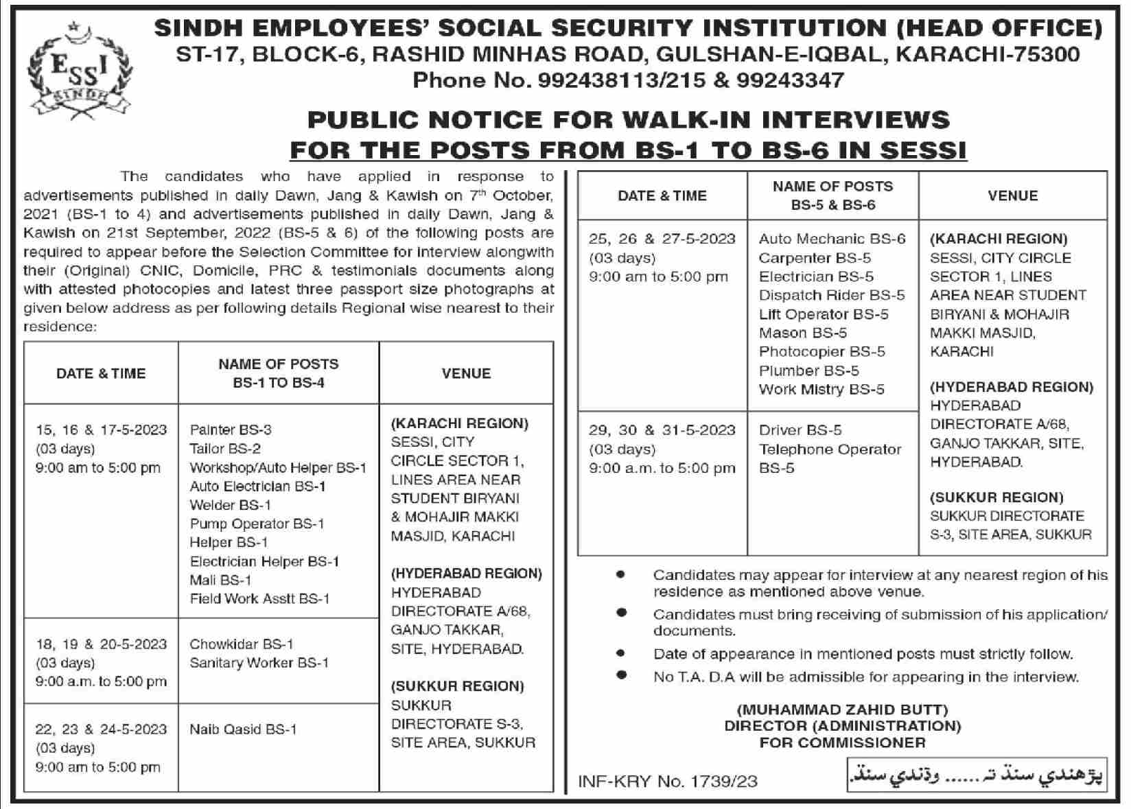 Vacancies in Sindh Employees Social Security Institution SESSI Advertisement May 2023