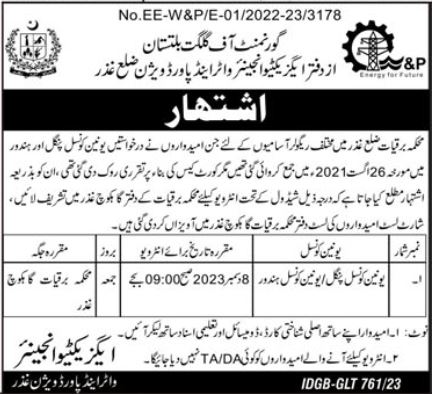 Electricity Department is looking for candidates for following posts as per job advertisement published in daily K2 Newspaper of November 23, 2023 for location Ghizer, ghizer Gilgit Baltistan Pakistan: