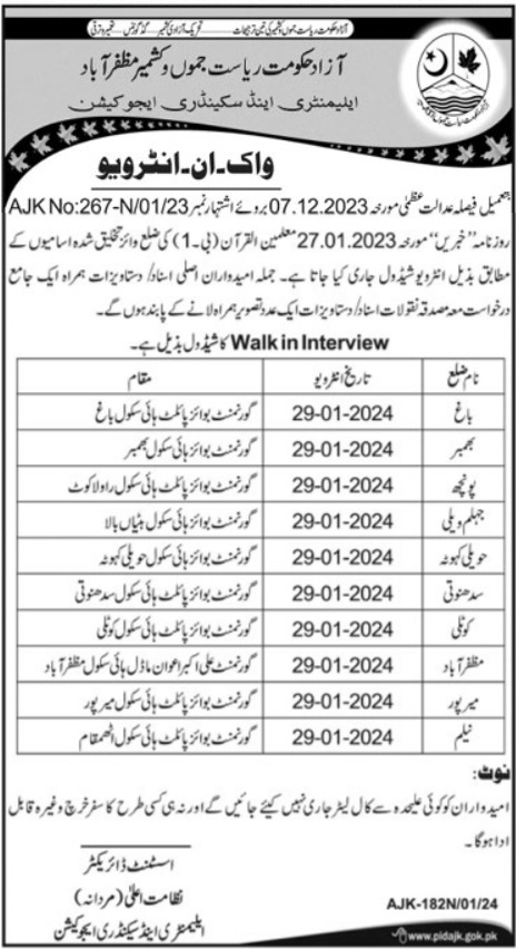Elementary and Secondary Education Department ESED is looking for candidates for following posts as per job advertisement published in daily Ausaf Newspaper of January 20, 2024 for location Muzaffarabad, muzaffarabad AJK Pakistan: